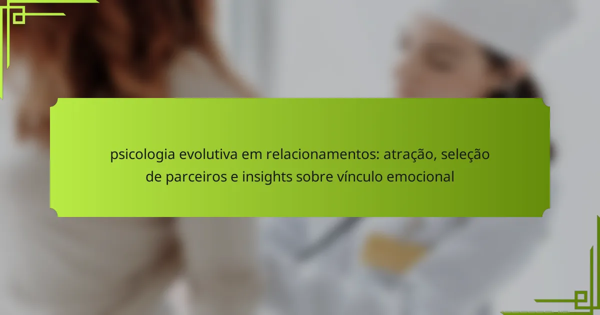 A psicologia evolutiva explica a atração nos relacionamentos como um mecanismo moldado pela seleção natural. Ela destaca a seleção de parceiros com base em características que sinalizam aptidão genética, como aparência física e status social. O vínculo emocional é influenciado pelos estilos de apego, que evoluíram para aumentar o sucesso reprodutivo. Esta estrutura sugere que as preferências em parceiros surgem de ambientes ancestrais onde a sobrevivência e a reprodução eram primordiais. Compreender essas dinâmicas pode fornecer insights sobre os padrões e comportamentos modernos de relacionamento.